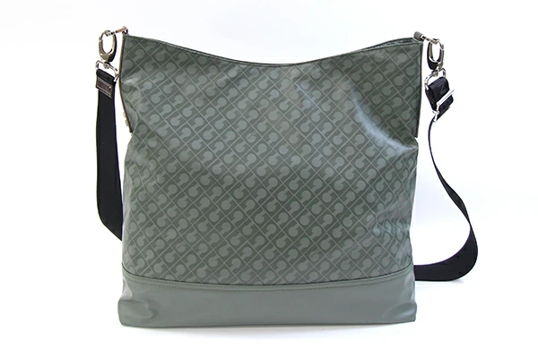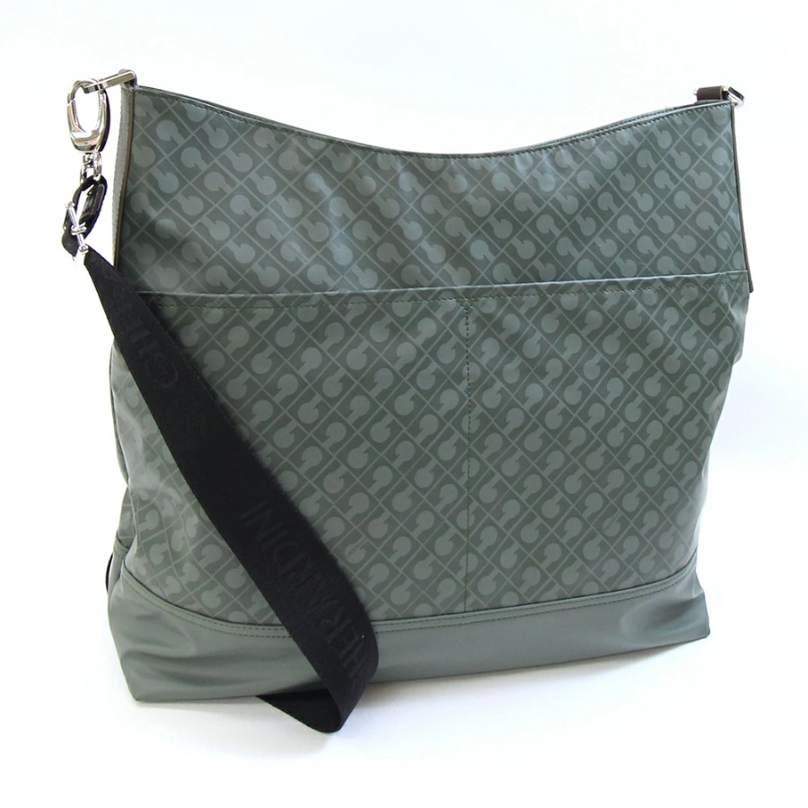 GHERARDINI Shoulder Bag, Grayish Green, Polyester Polyurethane Coated Leather, Used, Crossbody Bag, Men's/Women's.