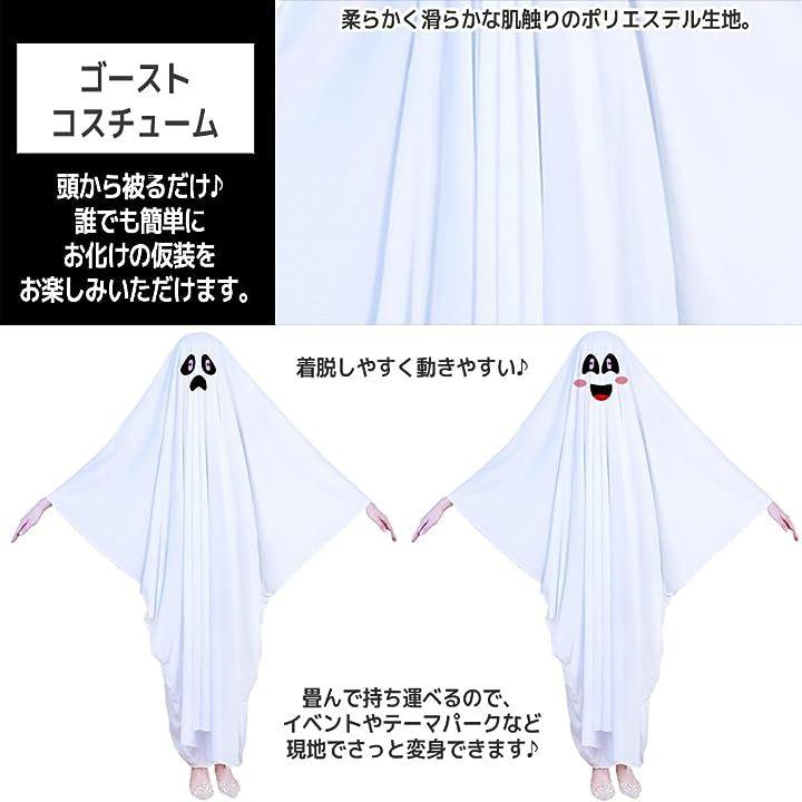 テーマパーク、ハロウィンイベントなど一人で着てもみんなで着ても盛り上がること間違いなしの幽霊コスプレです。
