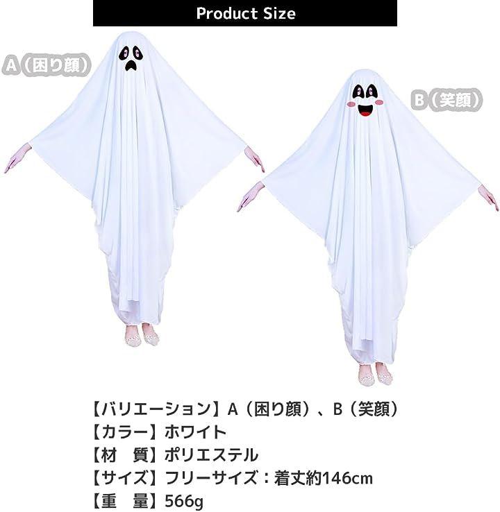 困り顔と笑顔、2タイプのユーモアたっぷりお化けポンチョです。