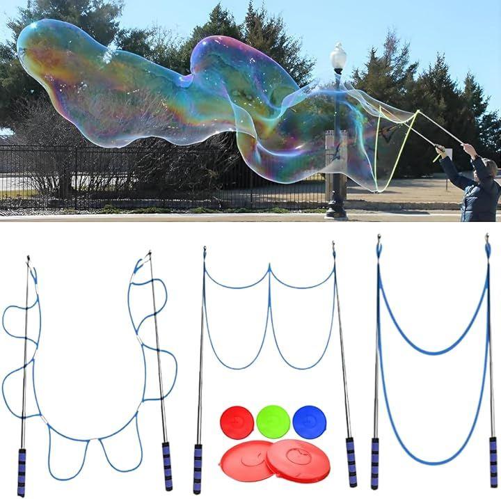 付属のバブルスティックにロープをつけて、とっても大きなシャボン玉が作れるアイテム。