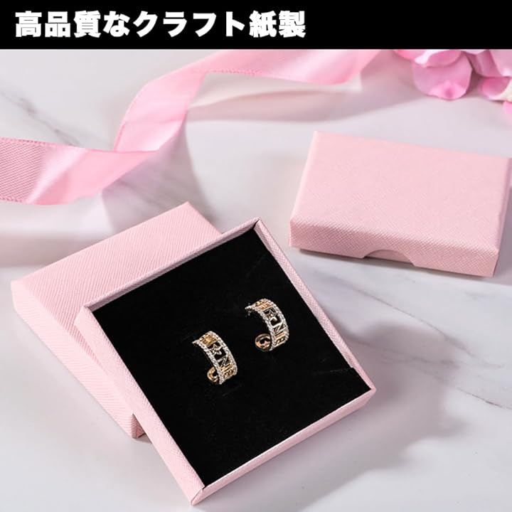 「高品質なクラフト紙製」ボックス内部にはアクセサリーなどの中身が映える切り込みの入った黒いスポンジ付き。