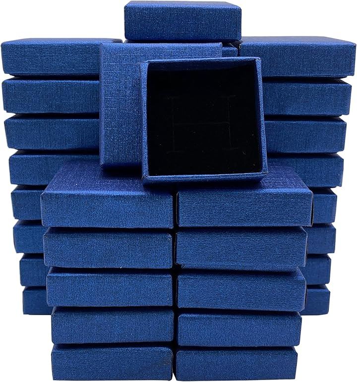 「商品内容」ギフトボックス 薄型タイプ:36個セット カラー:ブルー サイズ:5x5cm(正方形) 厚み:1.5cm 素材:クラフト紙 備考:黒スポンジ付き(ジュエリー用の切り込み有)