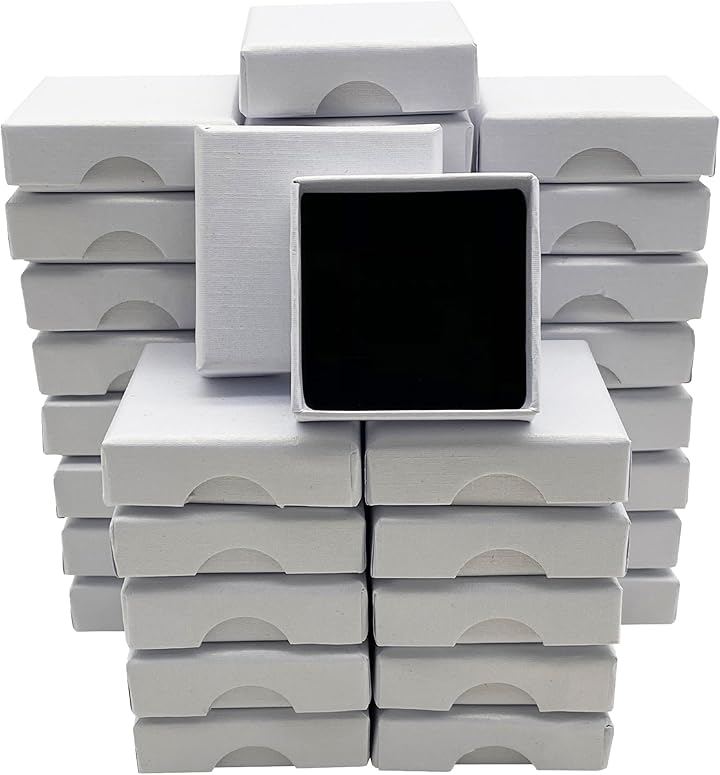 「商品内容」ギフトボックス 薄型タイプ:36個セット カラー:ホワイト サイズ:5x5cm(正方形) 厚み:1.5cm 素材:クラフト紙 備考:黒スポンジ付き(ジュエリー用の切り込み有)