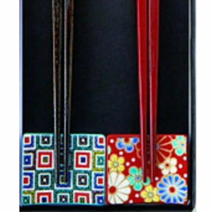 うるし箸(23cm)、九谷焼箸置き(3.2×3.8×高さ1.1cm)×各2、日本製