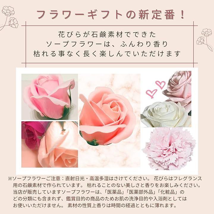 販売していますソープフラワーは、「医薬品」「医薬部外品」「化粧品」のどの分類にも含まれず、鑑賞目的の商品のためお肌の洗浄目的や入浴剤としてはお使いいただけません。