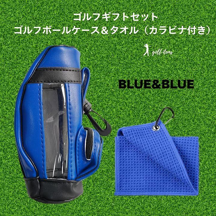 「製品仕様」セット内容:ミニキャディバッグ型ゴルフボールケース(3個収納可能、キーホルダータイプ)、マイクロファイバータオル(約30cmx30cm、カラビナ付き)。