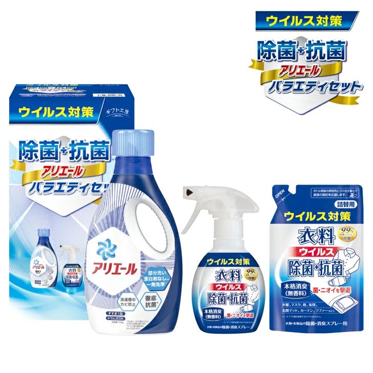 ウイルス除去、花粉ブロックを叶えるアリエールの液体洗剤に衣料の除菌スプレーをプラスしたギフトでウイルス対策を!