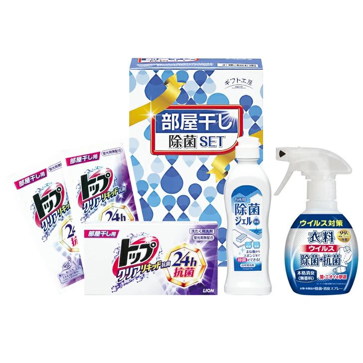 ライオンクリアリキッド部屋干し用(25g×2)、台所用除菌ジェル250ml、衣料除菌スプレー260ml×各1