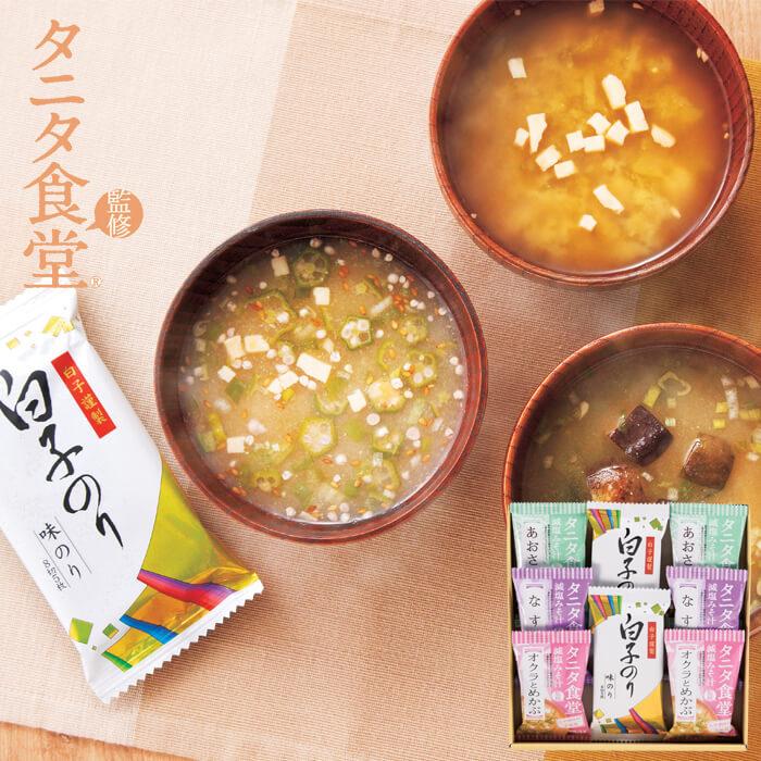 タニタ食堂監修のお味噌汁と白子のりの詰合せギフト。