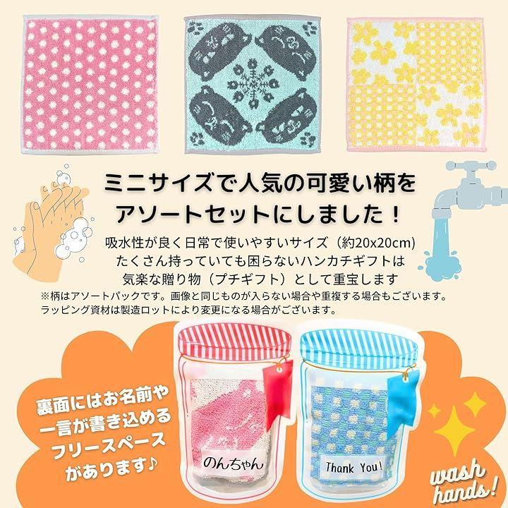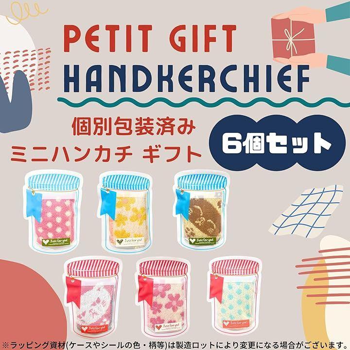「商品仕様」ジップ袋サイズ:約16x11.5x3cm,ハンカチ:約20x20cm,セット数:6個,素材:綿100% *ラッピング資材(シールの色・デザイン等)は、製造ロットにより変更になる場合がございます。