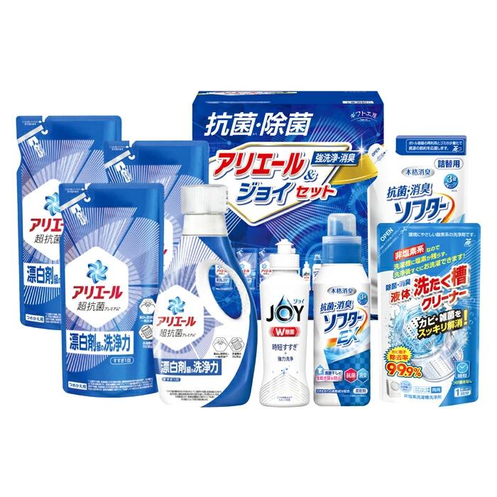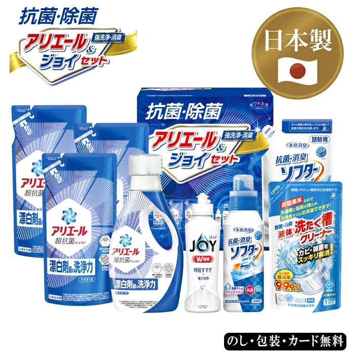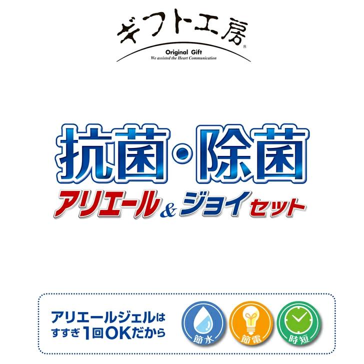 抗菌力に優れたアリエールに本格消臭の抗菌・消臭柔軟剤とW除菌の食器洗い洗剤ジョイをセットしました。