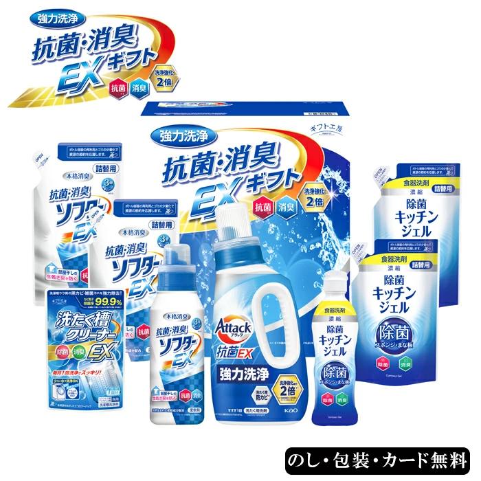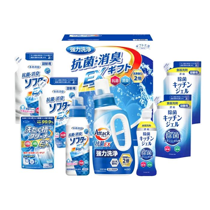 花王アタック抗菌EX750g、洗たく槽クリーナーEX100g、抗菌消臭ソフターEX350g×各1、詰替350g×2、除菌キッチンジェル200ml×1、詰替160ml×2