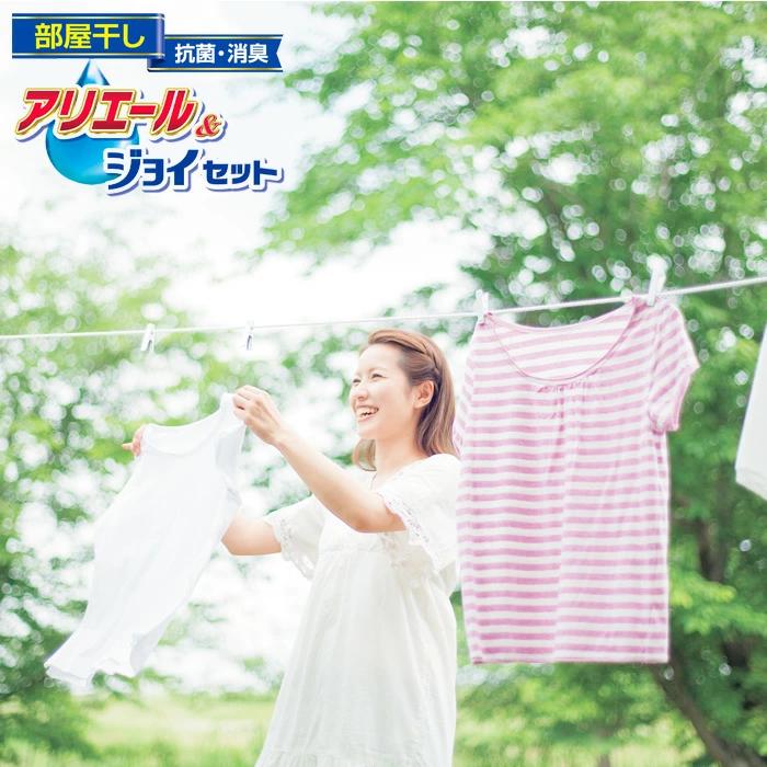 雨の日でも気持ちよく家事を!本格消臭で部屋干しに最適なアリエールとダブル除菌のジョイが入ったランドリー&キッチンセット。※デザイン及び商品内容が変更になる場合がございますので予めご了承下さい。