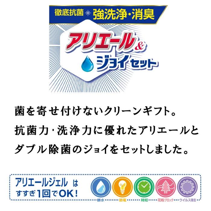 菌を寄せ付けないクリーンギフト。抗菌力・洗浄力に優れたアリエールとダブル除菌のジョイをセットしました。