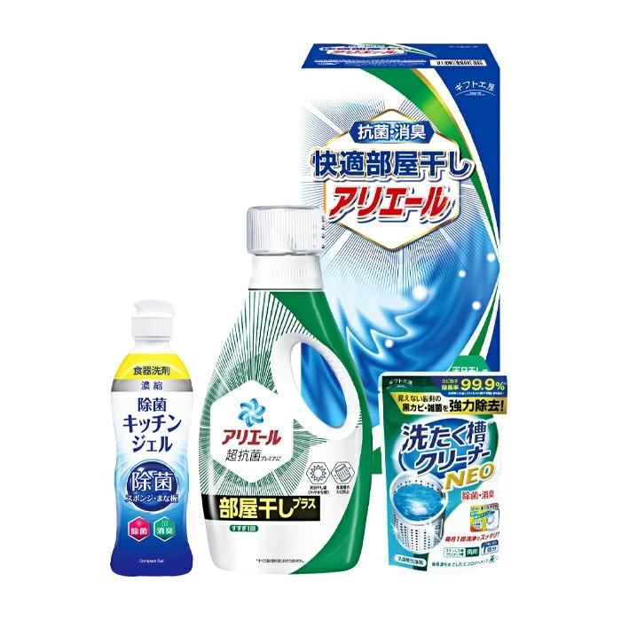 P&Gアリエールジェル部屋干しプラス690g、除菌キッチンジェル200ml、洗たく槽クリーナーNEO100g×各1