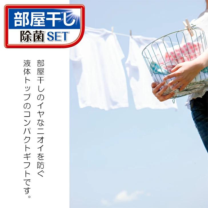 部屋干しのイヤなニオイを防ぐ液体トップのコンパクトギフトです。