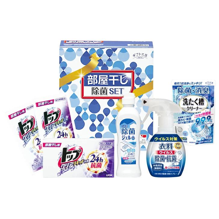 ライオンクリアリキッド部屋干し用(25g×2)、台所用除菌ジェル250ml、衣料除菌スプレー260ml、洗たく槽クリーナー100g×各1