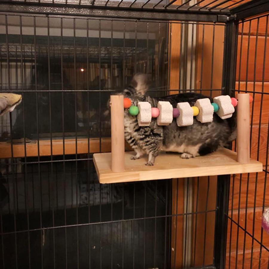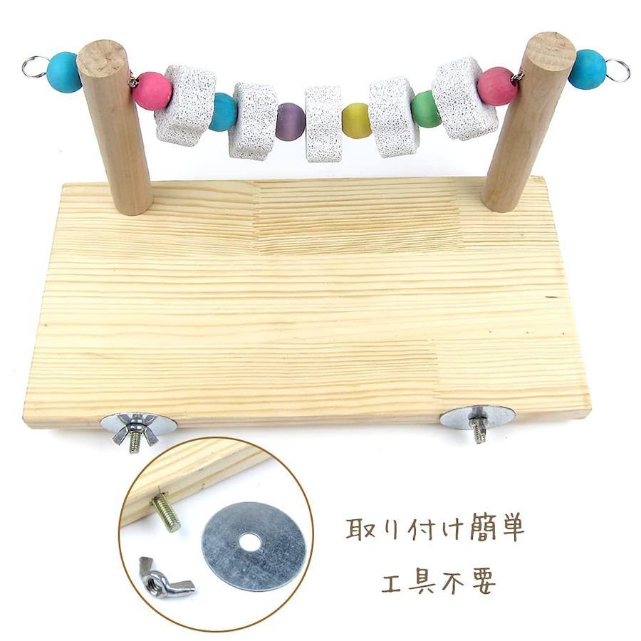 対象:チンチラ、デグー、モモンガ、シマリス、うさぎ、ネザーランド、ハムスターなどの小動物用、セキセイインコなど鳥用チンチラステージ。リスやチンチラ、デグーなどの上下運動を好む小動物用の木製ステージ。日常のストレス解消にも最適。歯の伸び過ぎ防止に最適な小動物のかじり木。ステージになるかじり木は、天然木材100%でできており、安心してお使いいただける健康グッズ。30×15×15cm大きめサイズ。複数を組み合わせて設置すると階段のように拡張することが可能。ケージ内部のスペースを有効利用に!工具不要で取り付け簡単。飼育ケージ内側の適度な位置にステージ本体背面部の穴(2箇所)にケージ内側から付属のボルトを差し込み、外側より付属のとめ具を締め込んで固定して下さい。