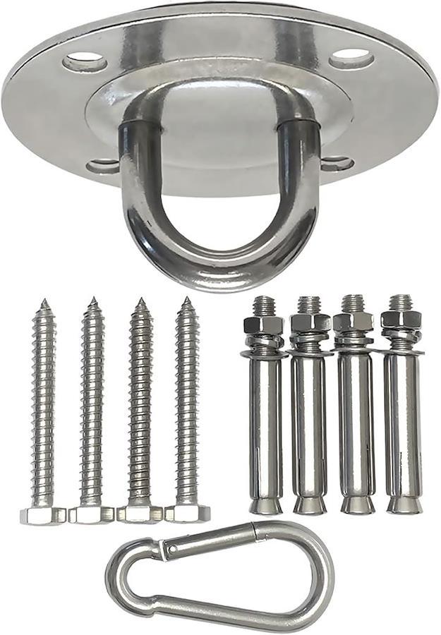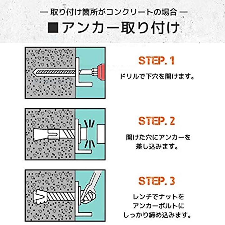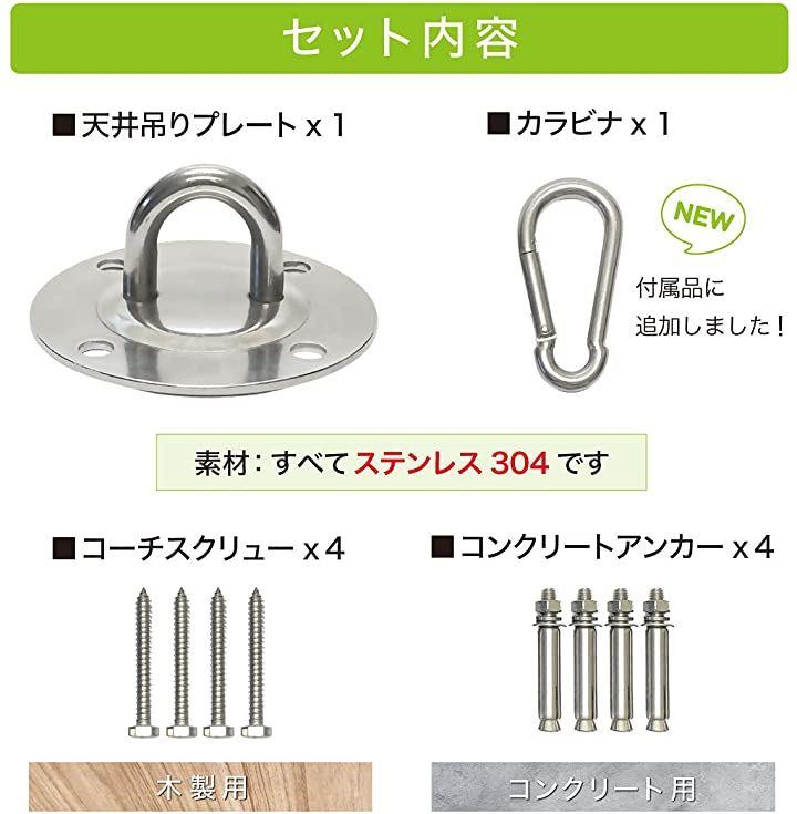セット内容: プレートx1、コンクリート用アンカーx4、スクリューねじx4、カラビナx1