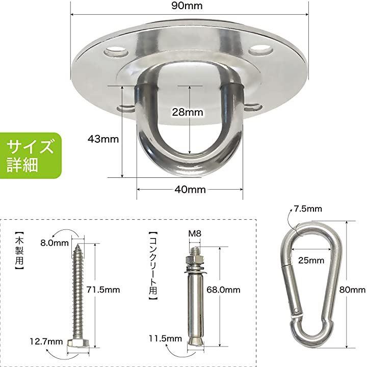 セット内容:吊り下げプレートx1、ココンクリート用アンカーx4、スクリューねじx4、カラビナx1プレートサイズ 全長:90mm