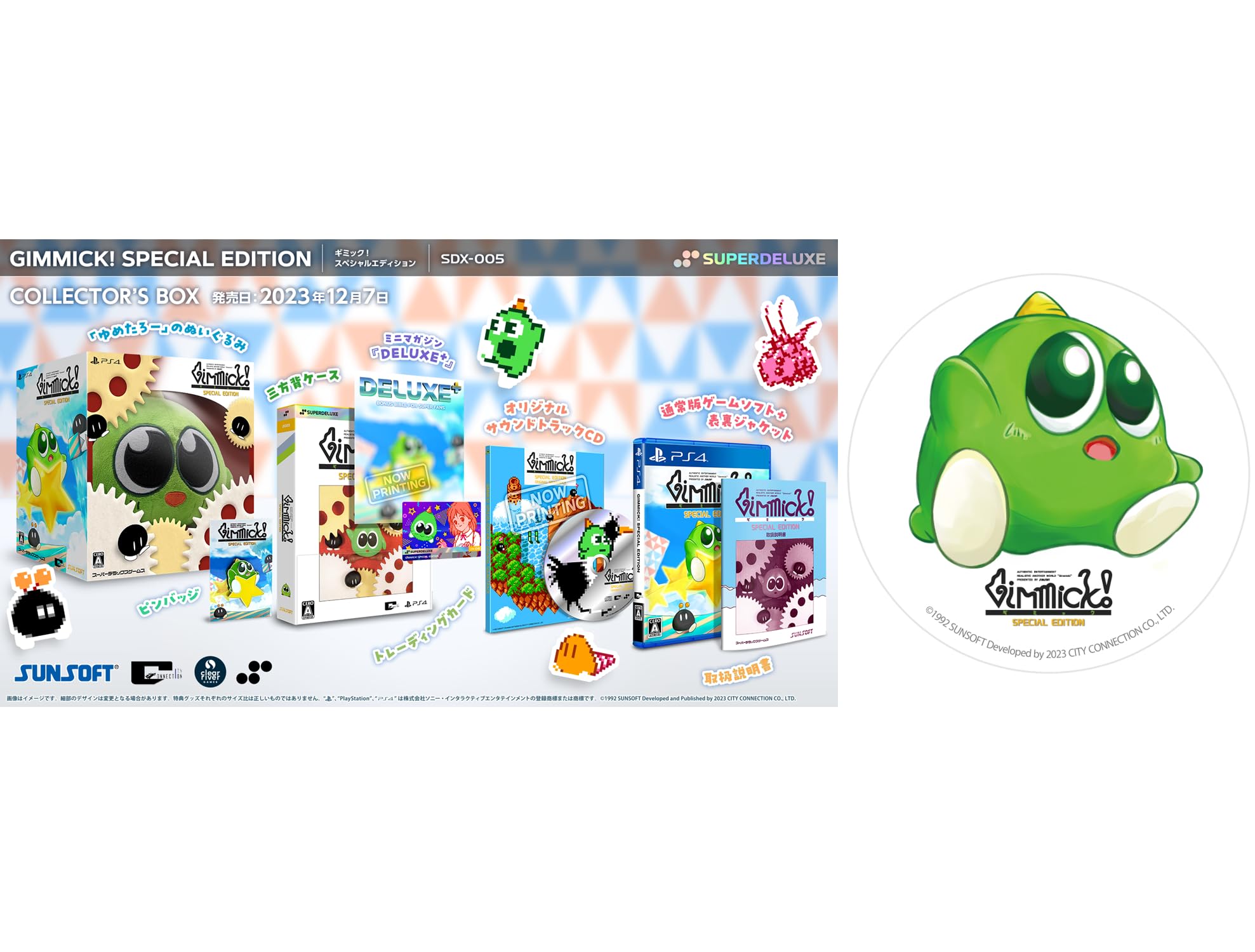 【対応言語】日本語、英語1992年にサンソフトよりファミコン用アクションゲームとして発売された『Gimmick!』が、スペシャルエディションとして復活! 古き良き時代の挑戦を現代のプレイヤー向けに、クイックセーブ&ロードや、巻き戻しができる便利な機能も搭載。また、ノーマルエンドあるいはトゥルーエンドの各ステージのクリアタイムが記録できる『スピードランモード』では、オンラインランキングにてトータルタイムを世界のプレイヤーと競うことができます。さらに、25個の実績を解放していく『シリアスモード』が遊べます。かわいい見た目と裏腹に高度でダイナミックなアクションと、ファミコン屈指の重厚でポップな音楽はもはや伝説!スペシャルエディションの新たな『Gimmick!』に挑戦してください。