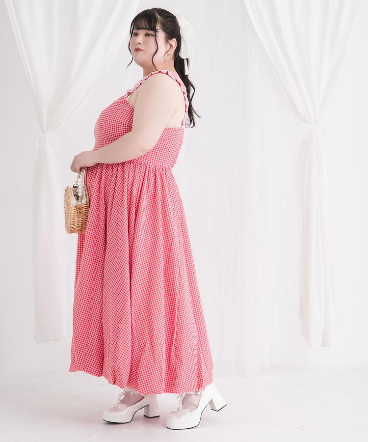 肩フリルは軽やかなオーガンジー素材で、可愛さを引き立てます。