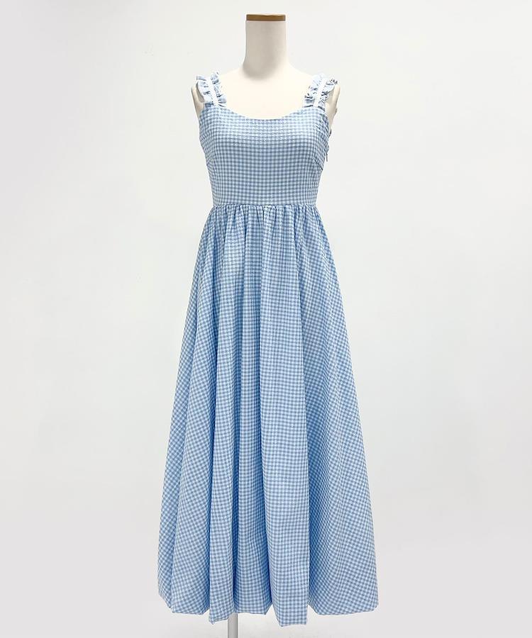 肩フリルは軽やかなオーガンジー素材で、可愛さを引き立てます。
