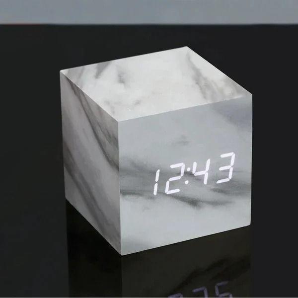 Gingko Design | Cube Click Clock (Marble / White LED) | Clock, Table Clock, Alarm Clock, Stylish Interior