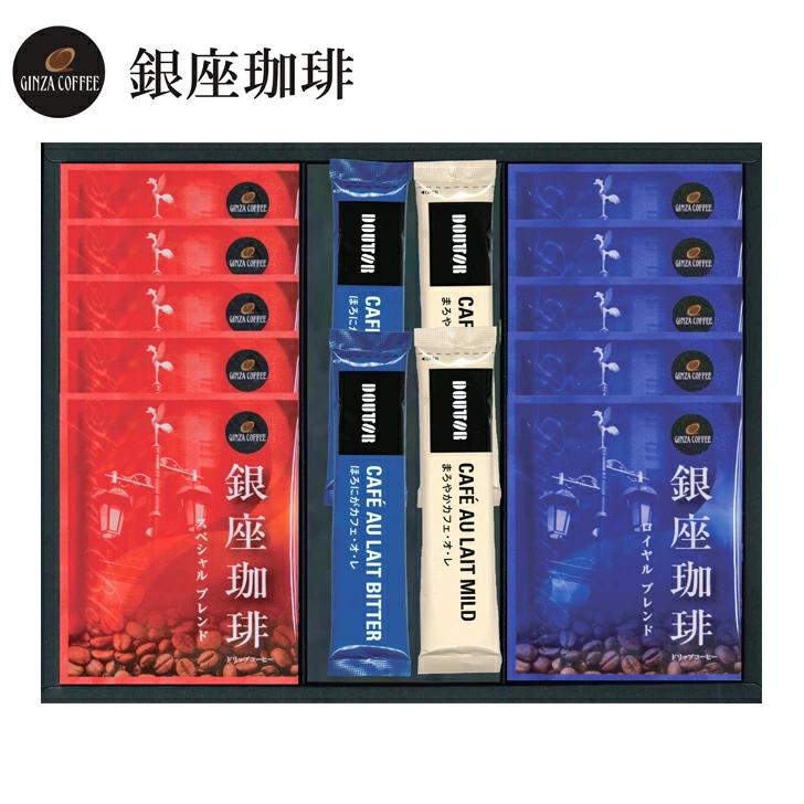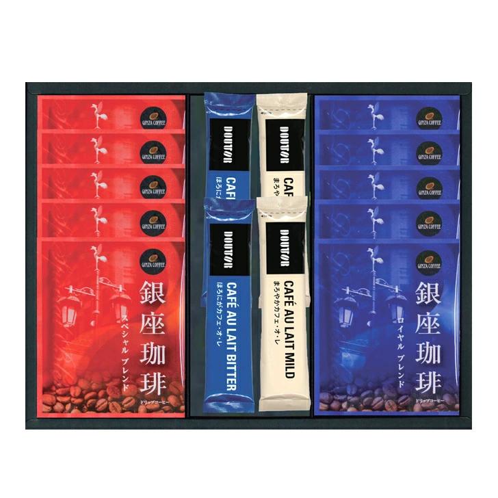 銀座珈琲ロイヤルブレンド、銀座珈琲スペシャルブレンド各7g×5、ドトールほろにがカフェ・オ・レ7g、ドトールまろやかカフェ・オ・レ13g×各2