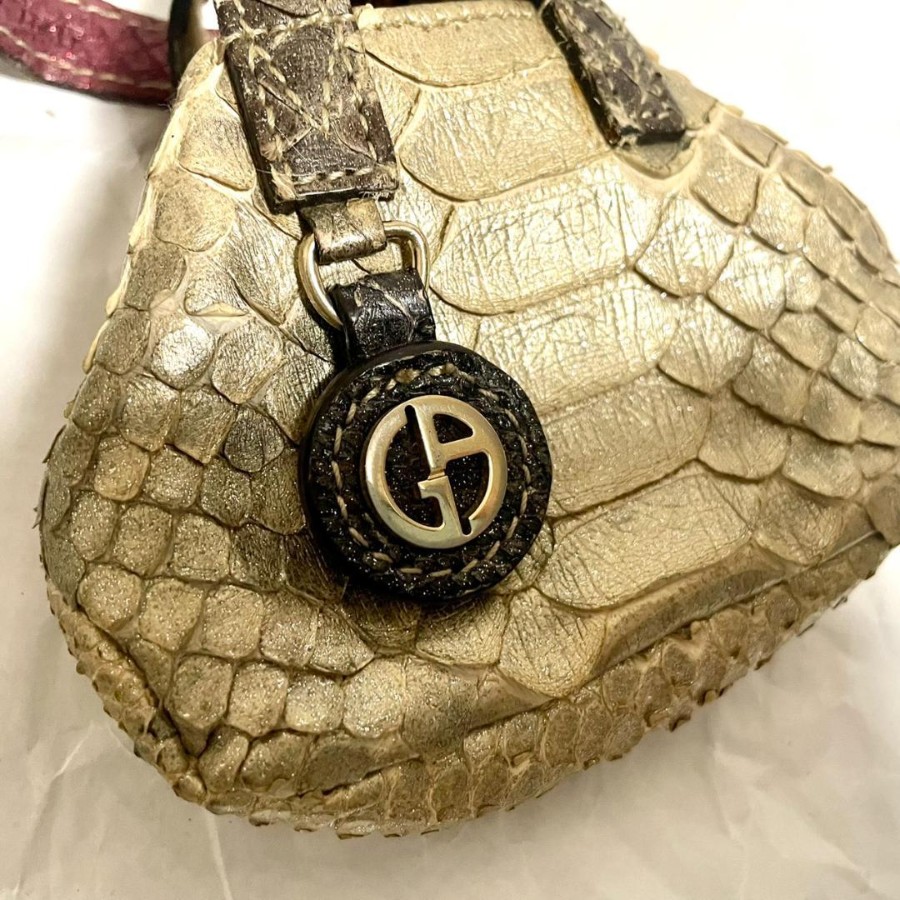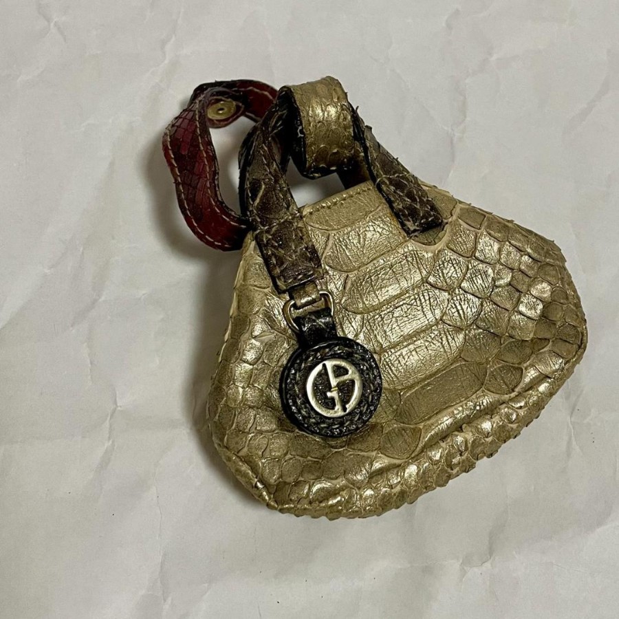 こちらは GIORGIO ARMANI アルマーニ レザー ミニバッグ チャーム ゴールドになります。