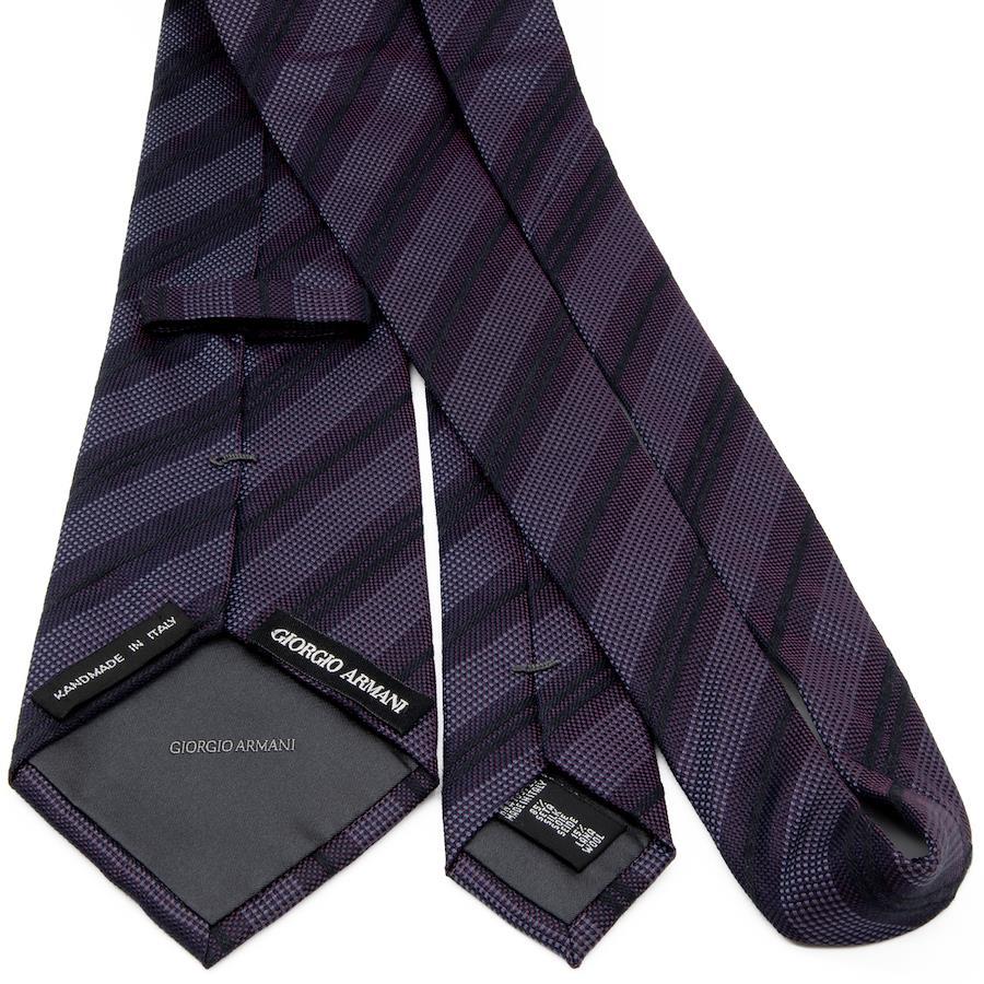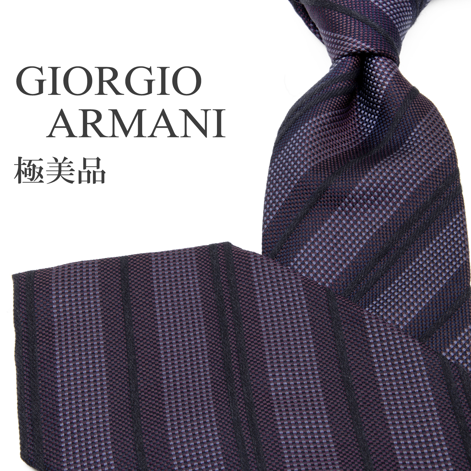 こちらは深みのある色合いと、立体的な織りが胸元を彩ってくれる、ジョルジオアルマーニのネクタイでございます。