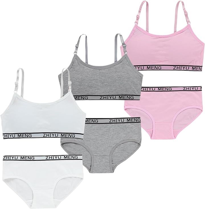 Girls' Bra and Shorts Set, Half Top, Junior, Cupped, Innerwear, Adjustable Shoulder Straps, 3 Colors