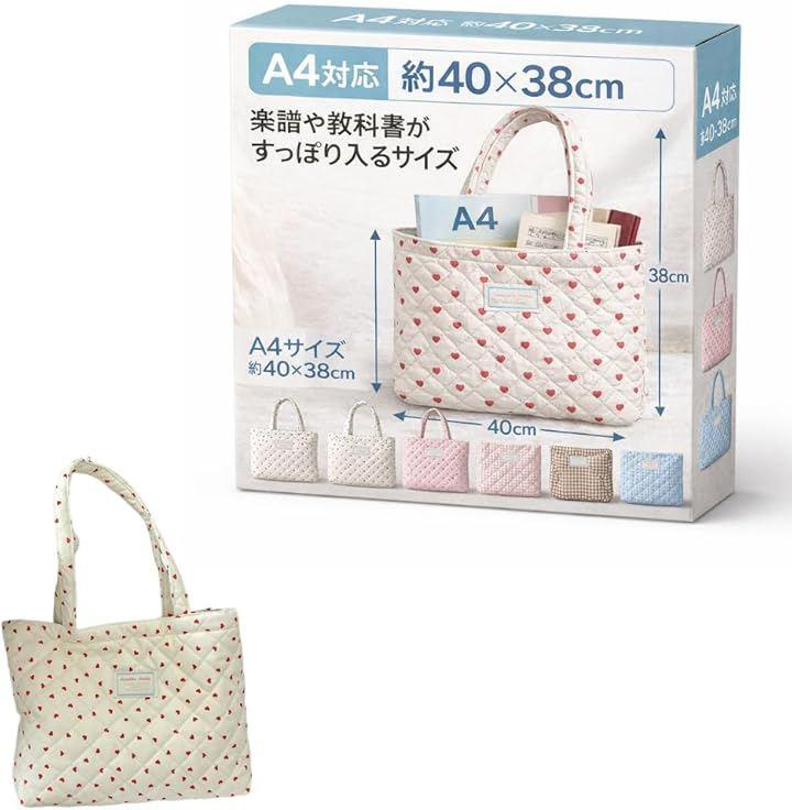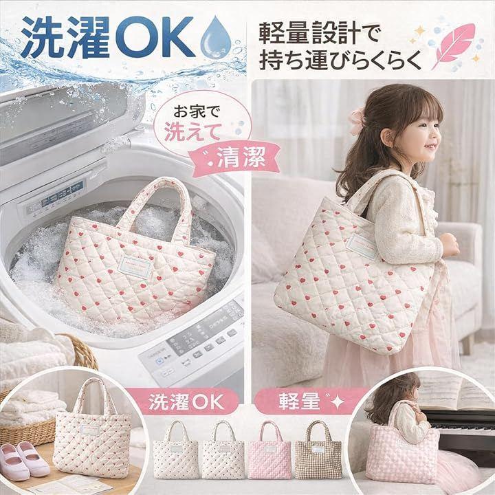 Girls' Lesson Bag for Preschool/Elementary School: A4 size compatible, tote bag for school, lessons, piano practice, and other activities, featuring heart quilting.