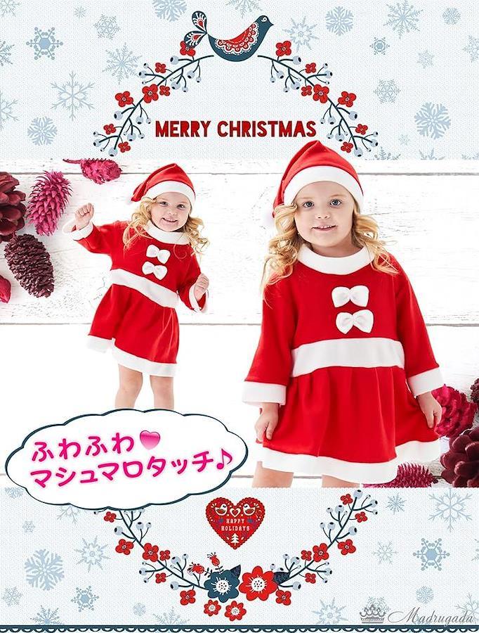 お子様をより可愛らしく演出するふわふわ柔らかな生地のサンタクロース衣装セット