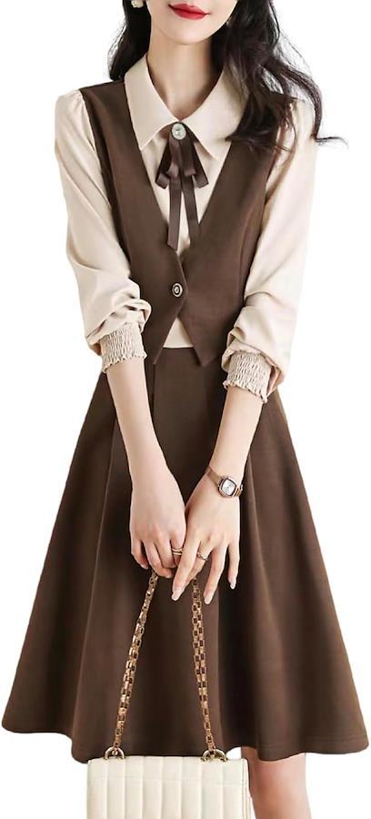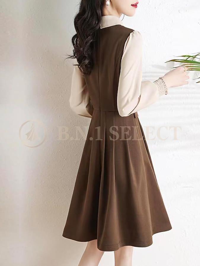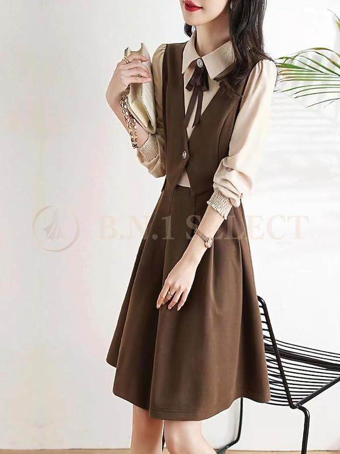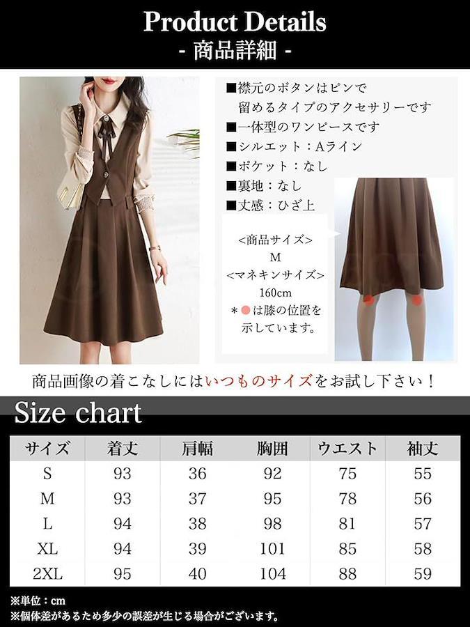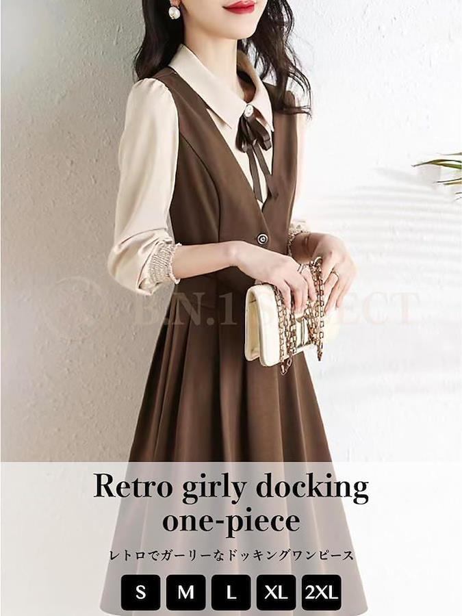 ブラウス、スカート、ベストが一体型になっているドッキングワンピースです。