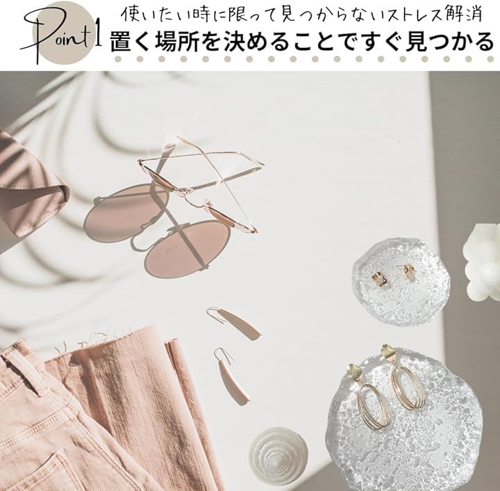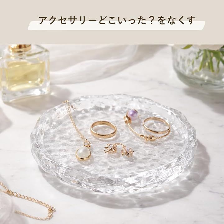 「毎日のアクセサリー選びが楽しくなる」ジュエリー映えする、ガラスの透明トレイ。