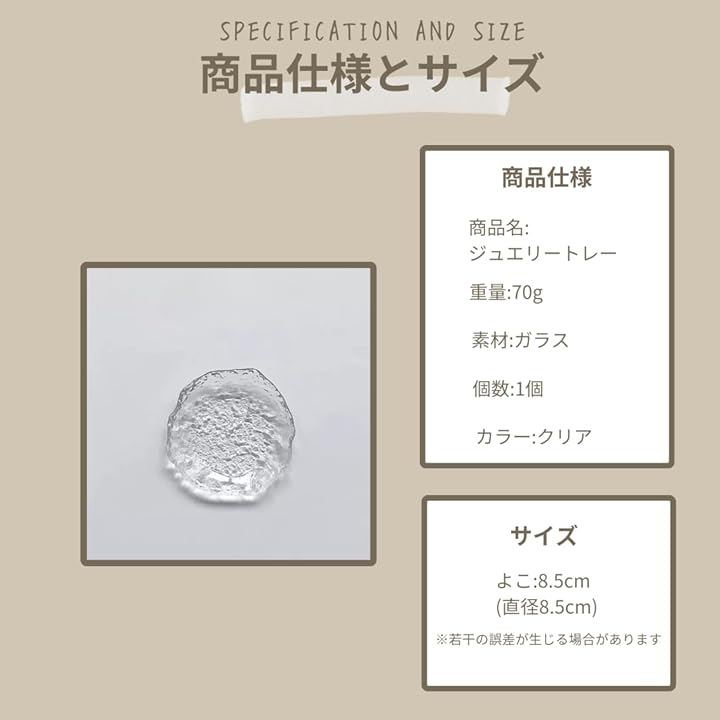 「商品仕様」ジュエリートレイ 個数:1個 素材:ガラス サイズ:横8.5cm