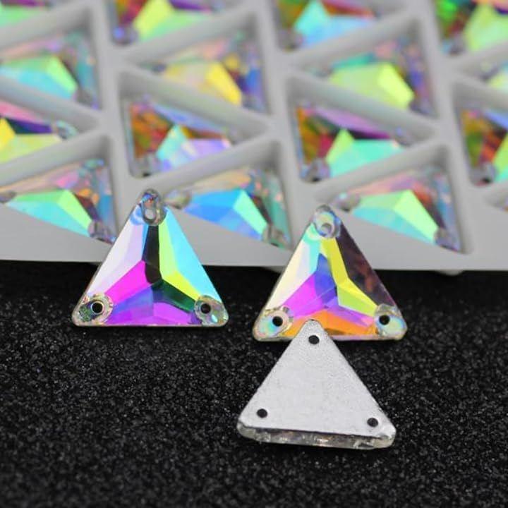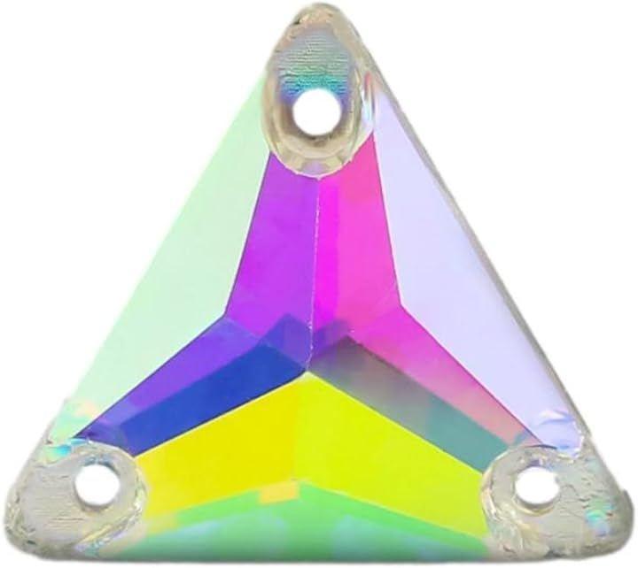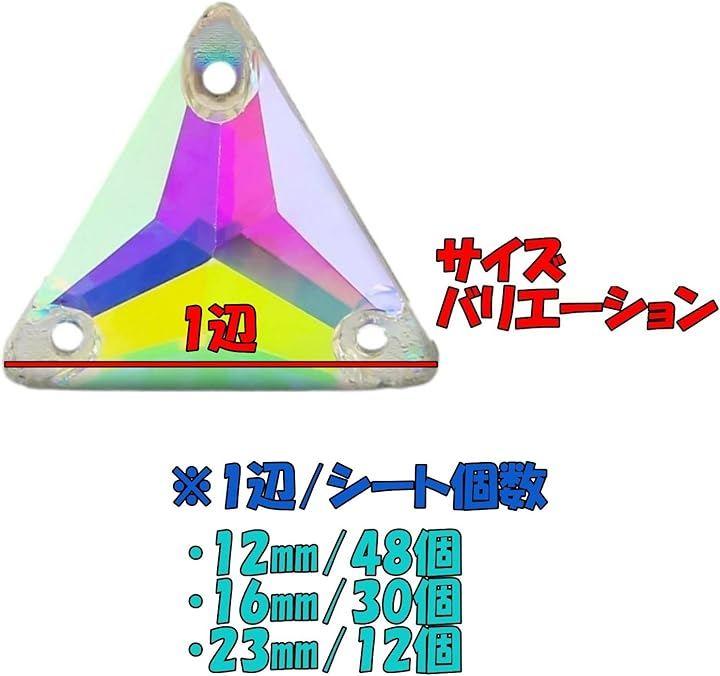 「素材」ガラス「色」AB彩、オーロラ 「タイプ」ソーオン、縫い付け用両端穴2つ「形状」三角形 「販売単位」各サイズ別トレー1つで販売(トレー内の個数はサイズ別)