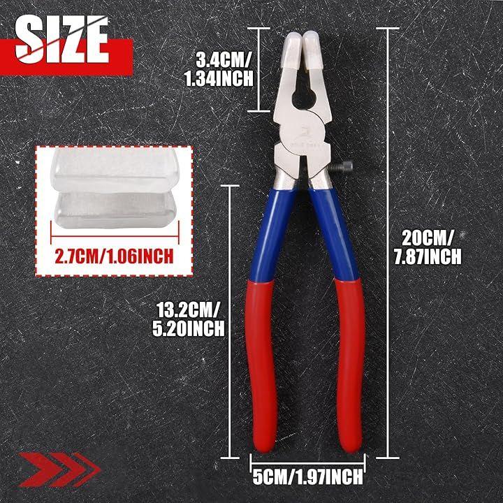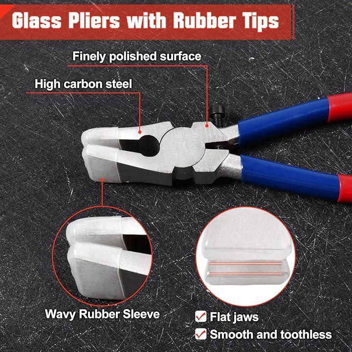 「平らな顎のデザイン: 平らな顎のガラスプライヤーは切断ラインに沿って均一な圧力を加えることによってガラスを壊すのを助ける。