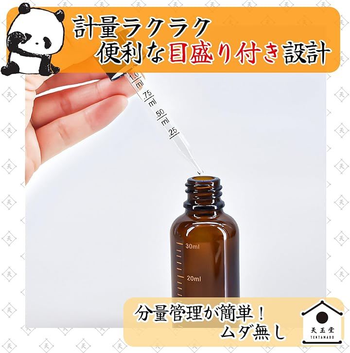 スポイト部分に目盛りが付いており、液体の使用量をひと目で確認できます。
