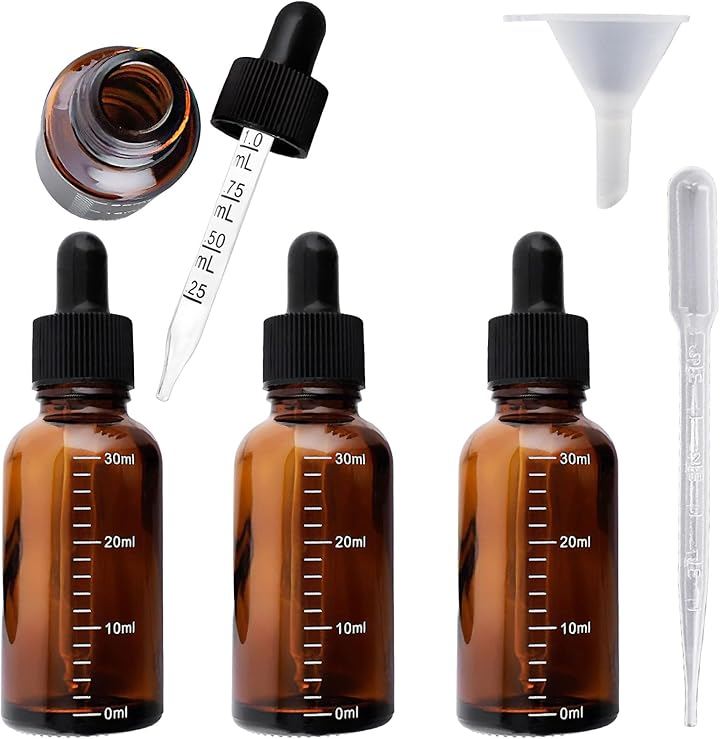 Glass Dropper Bottles, Light-Blocking, with Measurement Markings, Suitable for Aromatherapy and Essential Oils, 30ml, Brown Bottles x 4