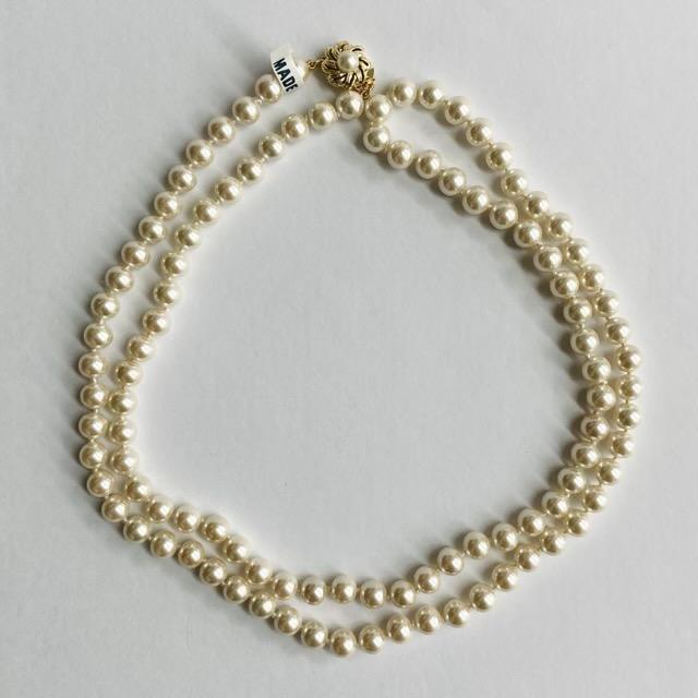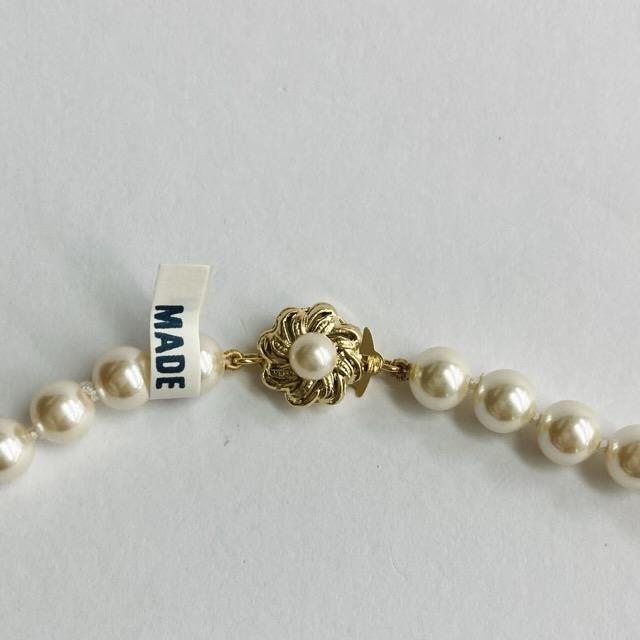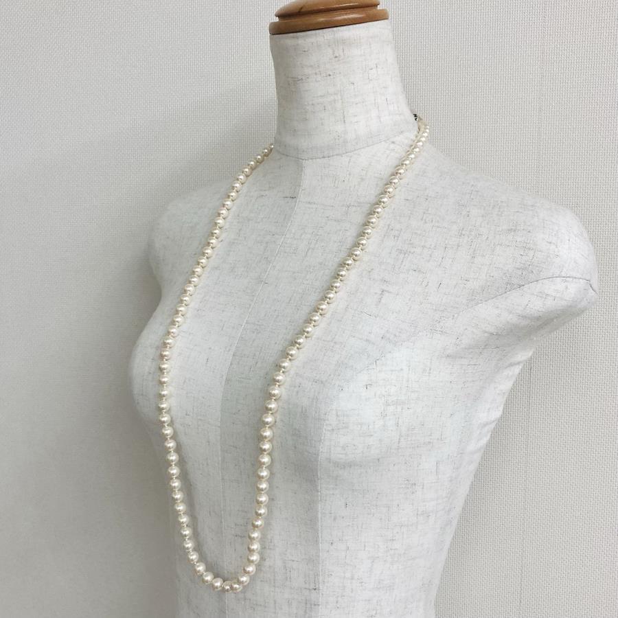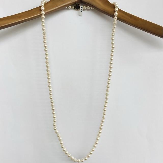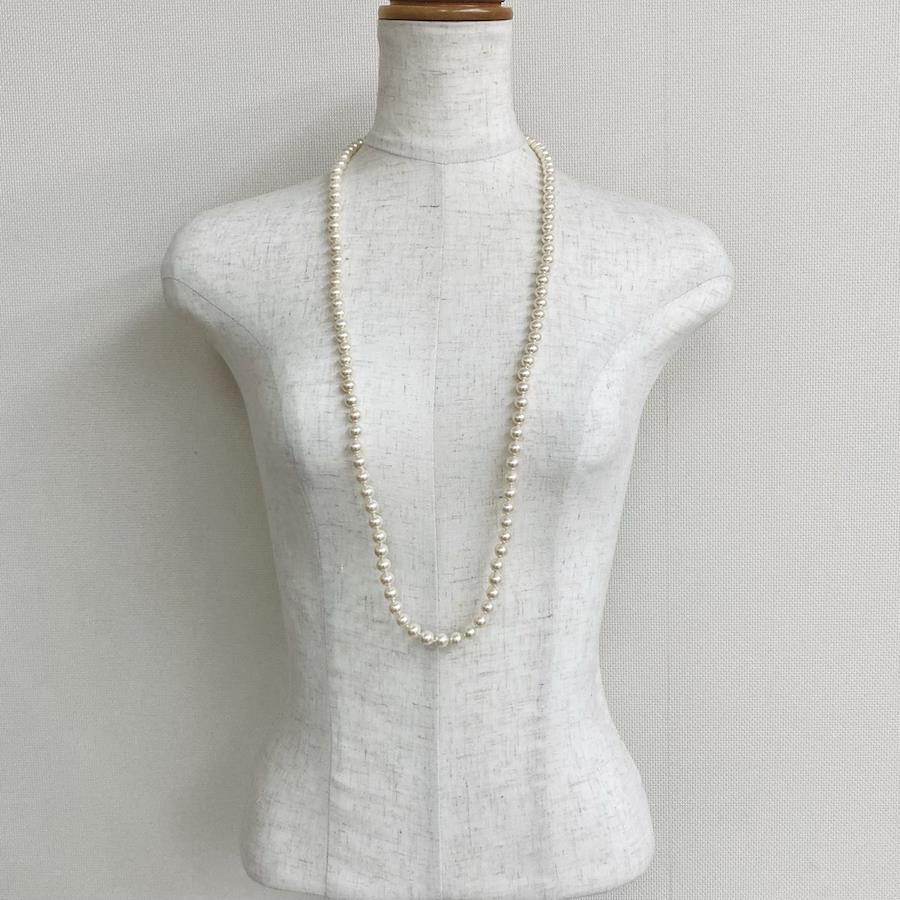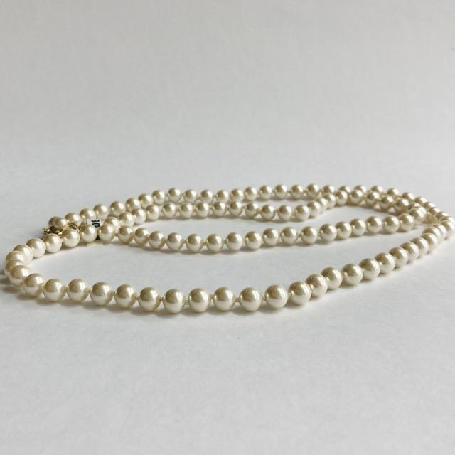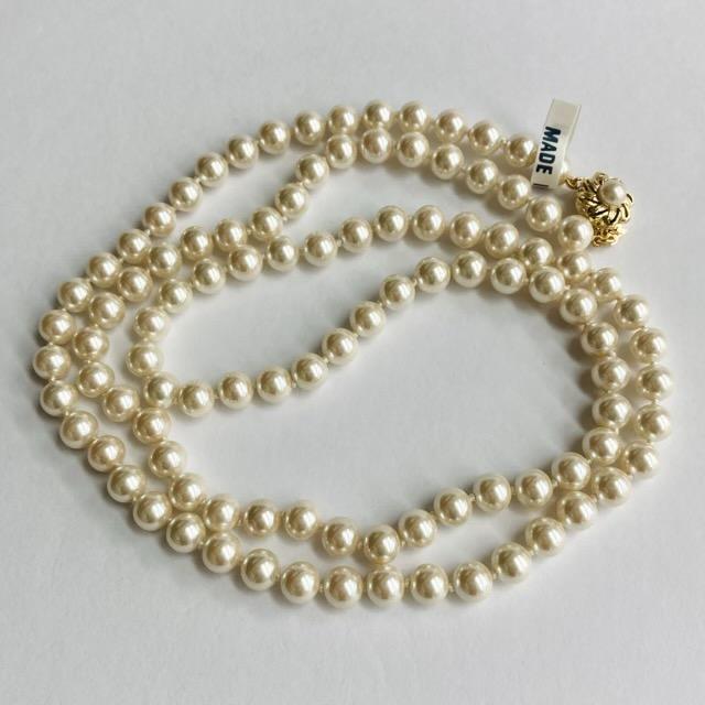 こちらはガラス素材の原玉を使用したオリジナル日本製ガラスパールネックレスです。パールとパールの間に1つづつ結び目を入れたオールノット仕様で、ワンランク上のコスチュームジュエリーとなっております。パールサイズは直径約8mmサイズで、長さはゆったり着けられてアレンジも可能な全長約90cmとなっております。ガラスパール特有の高級感漂う重みとオールノット仕様で存在感のあるネックレスになっております。※オールノット加工は、玉同士に隙間があるため擦れ合いにくく・キズなどが付きにくい、又、結び目があることで動きがありしなやかさもある、更に、万が一糸が切れてしまった時でも最小限で抑えられる等が特徴です。