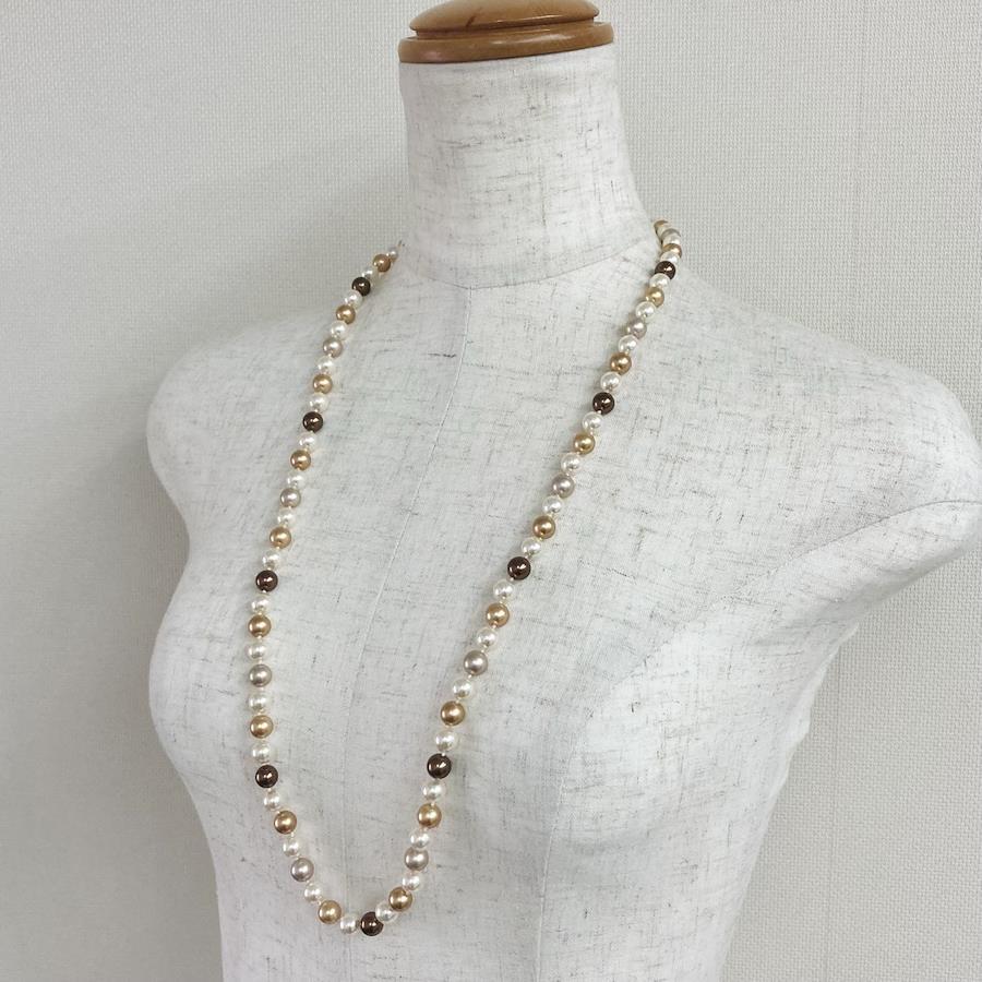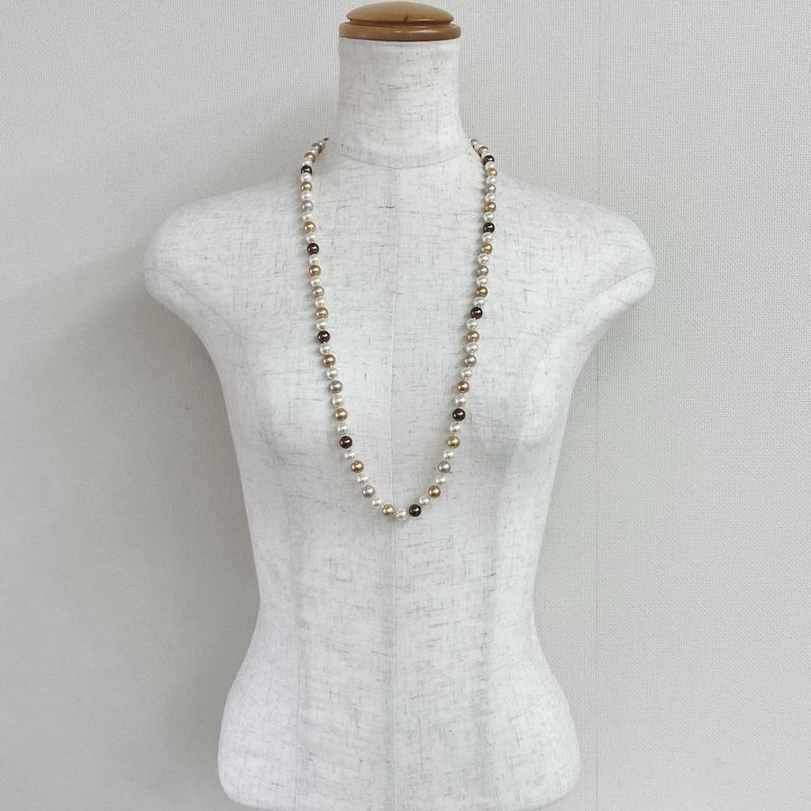 Glass pearl all knot opera necklace/8mm about 80cm/brown mix/made in Japan