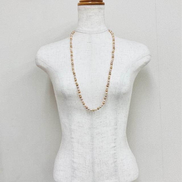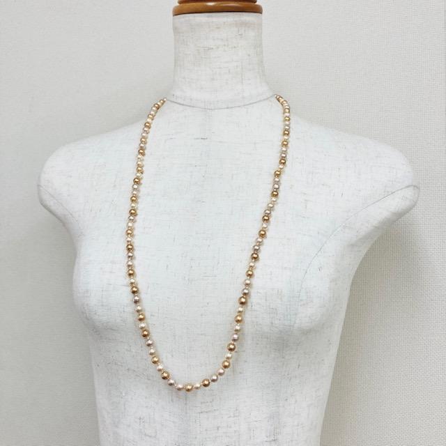 ガラスパールmixカラーオールノットオペラネックレス/エンドレス/6mm約80cm/ベージュmix/made in japan