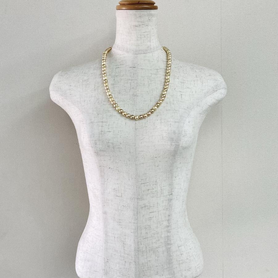 こちらはガラス素材の原玉を使用したオリジナル日本製ガラスパールネックレスです。パールサイズはスタンダードな直径約8mmサイズで、長さは服の上からでもややゆったり着けられる全長約60cmとなっております。ガラスパール特有の高級感漂う重みで存在感のあるネックレスになっております。※ナイロンコートワイヤーに通しております。糸よりも比較的丈夫で切れにくく、シルエットがすっきりする点が特徴です。ただし、横からの強い力で折れて型が付いてしまうと元に戻りませんので、鞄等に入れての持ち運びや収納の際には十分ご注意ください。