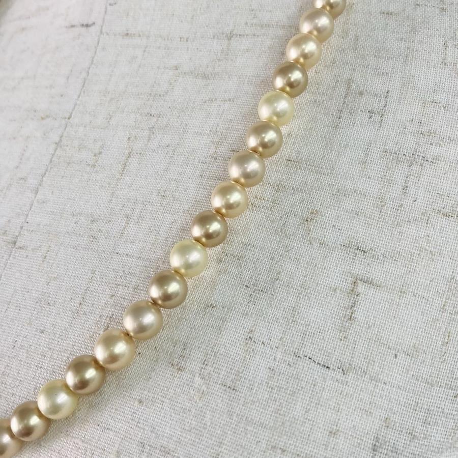 パールは当店のオリジナルカラーパールで、複数のゴールド系パールをランダムに使用しております。※原玉にはピンホールや小さい凹み等が見られる場合がございますが、自社にて検品の上許容範囲とさせて頂いております。