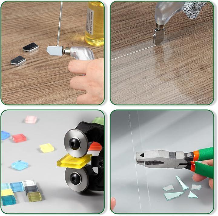 パッケージに含まれるもの:8 タイルニッパーx1、8ガラスランニングプライヤーx1、6 グローザープライヤーx1、交換用ラバーチップx2、ガラスカッターグリップx1、2-6mmカッターヘッドx1、6-12mmカッターヘッドx1、12-20mmカッター ヘッドx1、オイルドロッパーx1、クロスドライバーx1、交換用ホイールx2、スクリューx2、ワッシャーx2、六角レンチx1、耐切断手袋x1、レザージッパーバッグx1、合計20個。