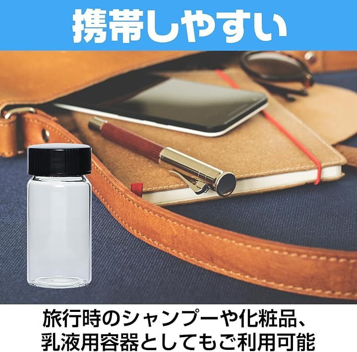 「幅広い用途に対応」 化粧品、エッセンシャルオイル、ビーズ収納、メッセージボトル、理科の実験用、さらにはキッチンのスパイスボトルまで。