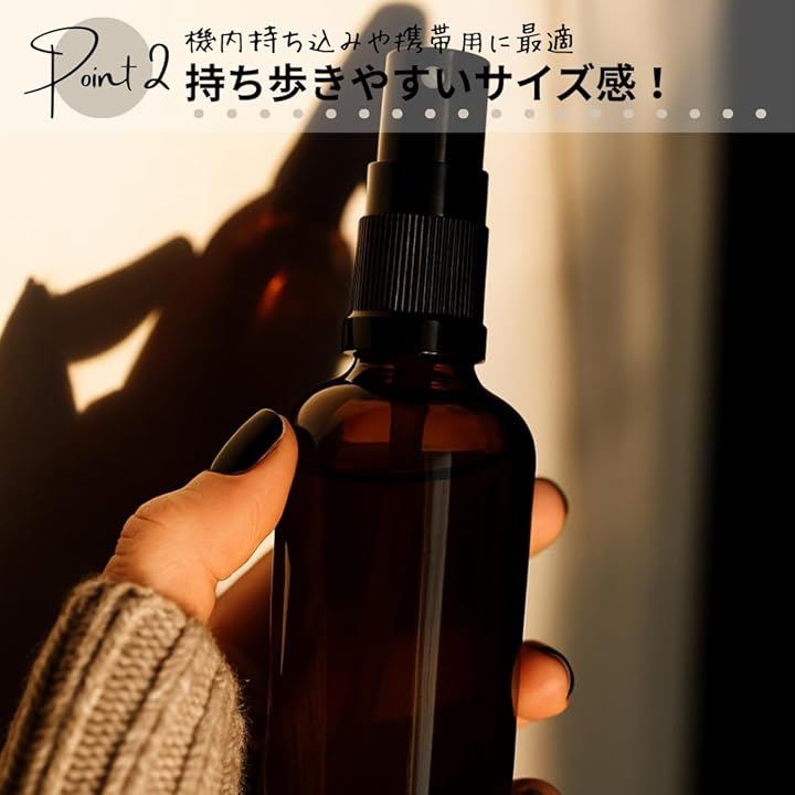 「旅行や外出にぴったり。持ち歩きやすいサイズ感。」コンパクトな100mLで、機内持ち込みや携帯用に最適。