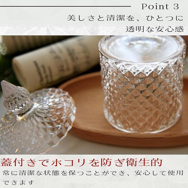 「多用途に使える収納ボックス」綿棒、コットン、爪楊枝、アクセサリー、キャンディなど、さまざまなアイテムを収納できる実用的なデザイン。